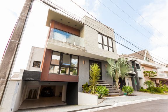 Residência 100% mobiliada, localizada no bairro Portão, na Rua Luiz Parigot de Souza, em região estratégica, com fácil acesso ao Shopping Palladium, comércio, serviços e principais vias da cidade. O imóvel possui 259,41 m² de área privativa, distribuídos em quatro pavimentos, com projeto moderno, ambientes amplos e excelente padrão de acabamento. Características do imóvel: Pavimento térreo • Garagem para 06 veículos (03 cobertos + 03 descobertos) • Quintal privativo • Adega • Escritório • Área de serviço independente Primeiro pavimento • Sala de estar ampla com painel planejado e ar-condicionado • Lavabo • Cozinha com ilha em granito e armários planejados • Espaço gourmet com churrasqueira, bancada em granito, armários planejados e fechamento em vidro Segundo pavimento • 03 suítes amplas, todas com armários planejados e ar-condicionado • Suíte master com closet e sacada Terceiro pavimento • Sala de TV com sofá e painel • Lavabo • Amplo terraço descoberto com vista livre do bairro Diferenciais • Imóvel com 01 ano de uso • Totalmente mobiliado • Móveis planejados e acabamentos de alto padrão • Planta bem distribuída e excelente iluminação natural Ideal para quem busca conforto, sofisticação e uma casa pronta para morar em uma das melhores localizações do Portão.