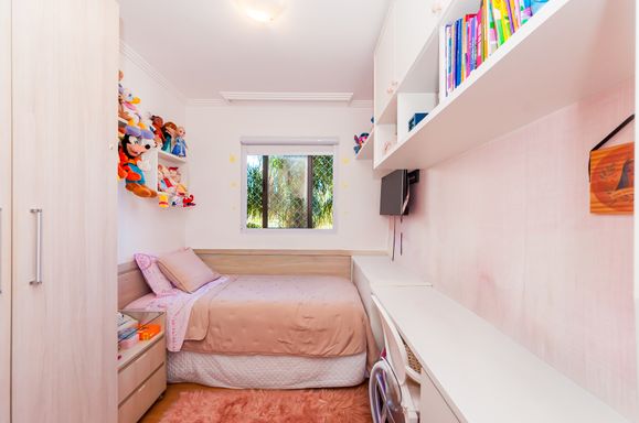 Área íntima com três quartos bem distribuídos e boa ventilação natural.