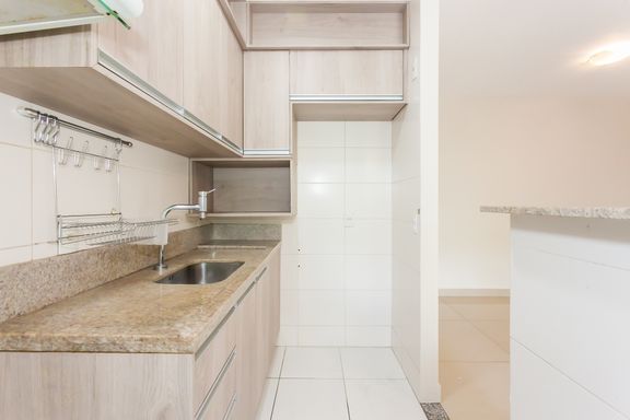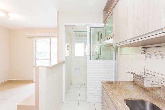 O imóvel possui planta bem distribuída, com sala para dois ambientes, integrada à sacada com churrasqueira a carvão, ideal para momentos de lazer com família e amigos. A cozinha planejada conta com armários sob medida e é integrada à área de serviço, oferecendo praticidade no dia a dia.