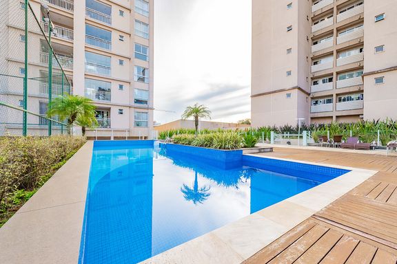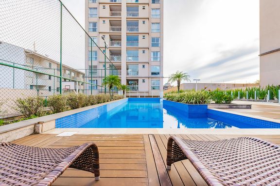 O condomínio oferece excelente infraestrutura, com portaria 24 horas e diversas opções de lazer, incluindo piscina adulto e infantil, academia equipada, salão de festas, espaço gourmet, brinquedoteca, playground, quadra poliesportiva, salão de jogos e áreas de convivência ao ar livre.