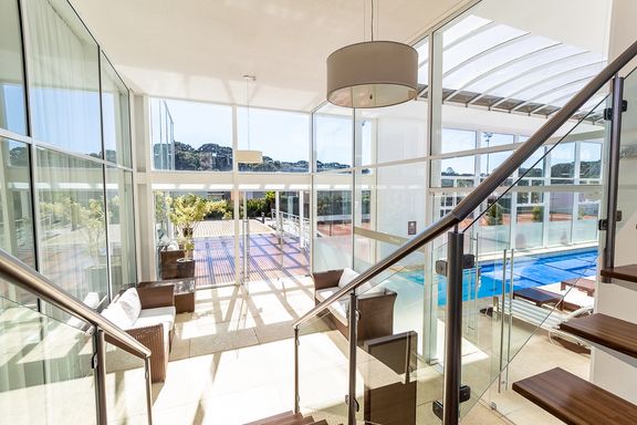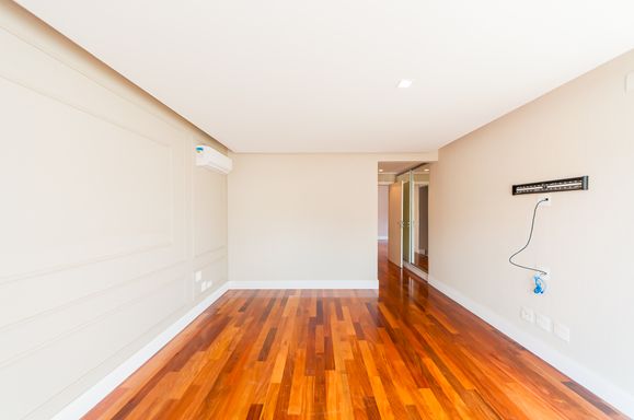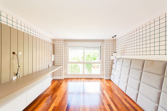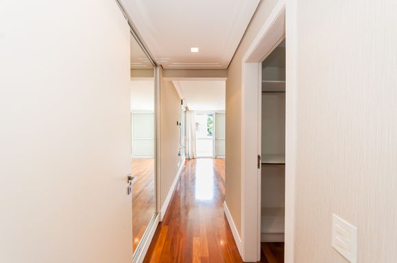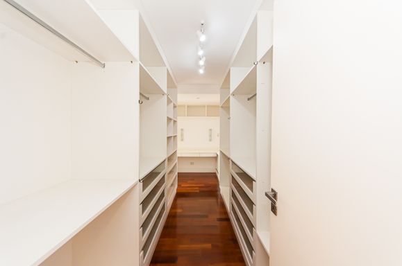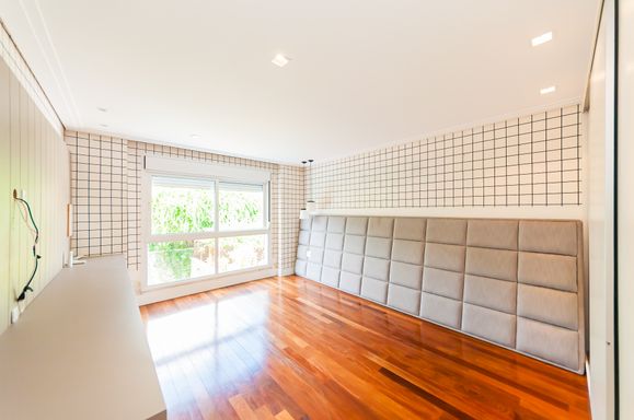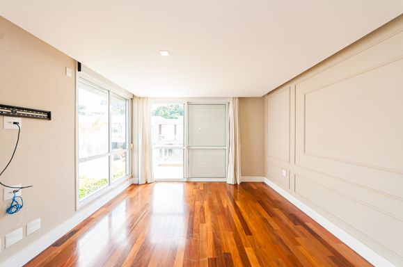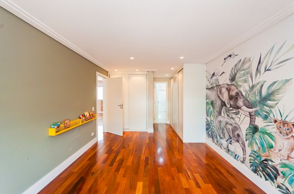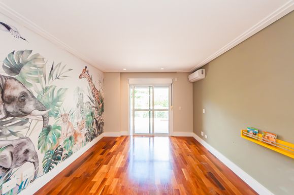 No piso superior, a área íntima oferece três suítes confortáveis, garantindo privacidade para toda a família. A suíte master se destaca pelo closet espaçoso e por um ambiente adicional que pode ser utilizado como sala íntima ou espaço de apoio.