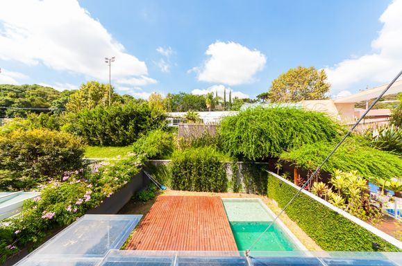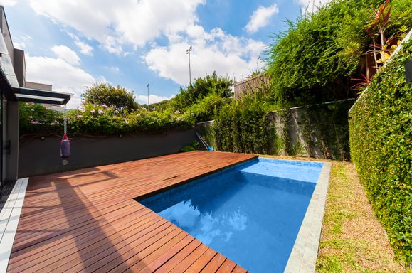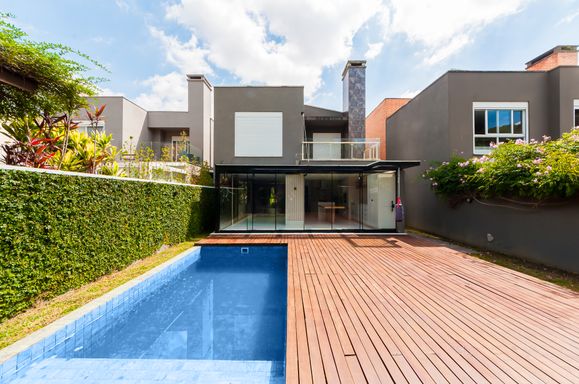 Na parte externa, o quintal privativo convida ao lazer e ao descanso, com piscina e deck que criam um ambiente agradável para momentos de convivência. A propriedade conta ainda com três vagas de garagem cobertas.