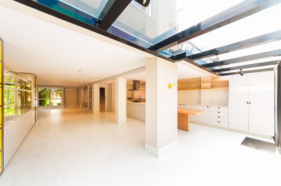 O espaço social conta com living integrado, aconchegante e versátil, perfeito tanto para o dia a dia quanto para receber convidados. A cozinha em conceito aberto é prática e otimizada, proporcionando ótimo aproveitamento de espaço. Ainda neste pavimento, há lavabo, ampla área de serviço e dependência completa.
