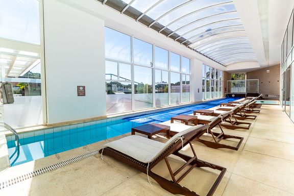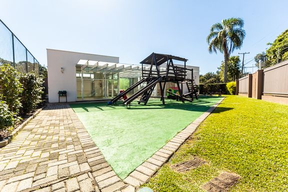 O condomínio dispõe de infraestrutura completa de segurança e lazer, com portaria 24 horas e diversas opções como piscina aquecida e coberta, academia, salão de festas, quadras esportivas, sauna, brinquedoteca, playground, bicicletário e áreas verdes exclusivas.