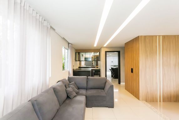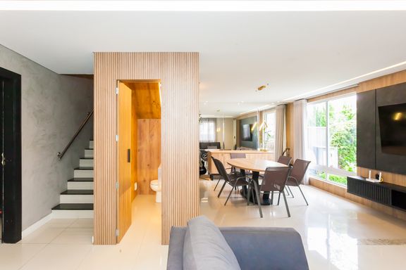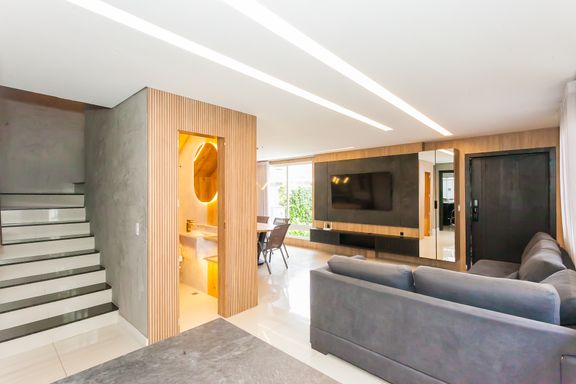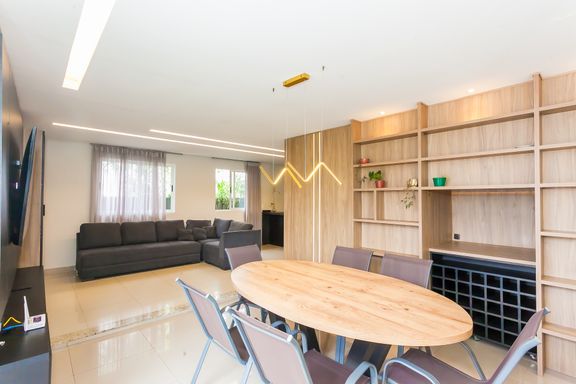 Apresentamos este sobrado de alto padrão, situado em uma localização privilegiada no bairro Umbará, dentro do exclusivo California Condominium Club. A residência foi recentemente reformada e está pronta para morar, oferecendo ambientes amplos, integrados e com excelente iluminação natural.