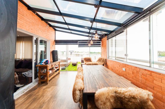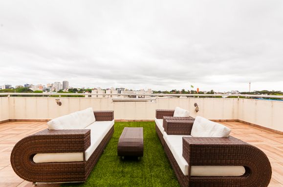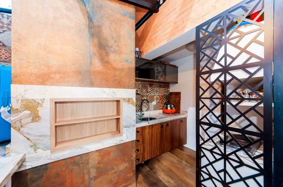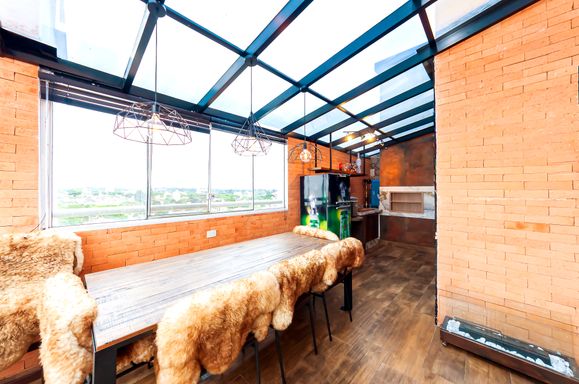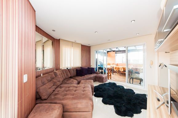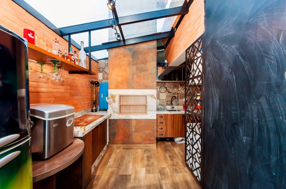 Cobertura com sala, churrasqueira e cozinha completa
